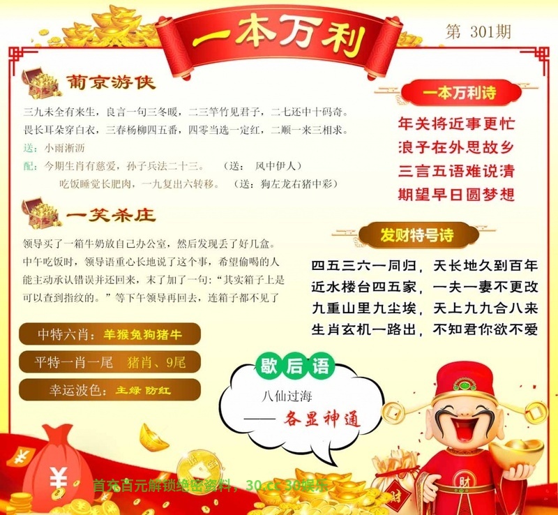 | 303期:平特一尾▶$$$$◀开:發00准 |